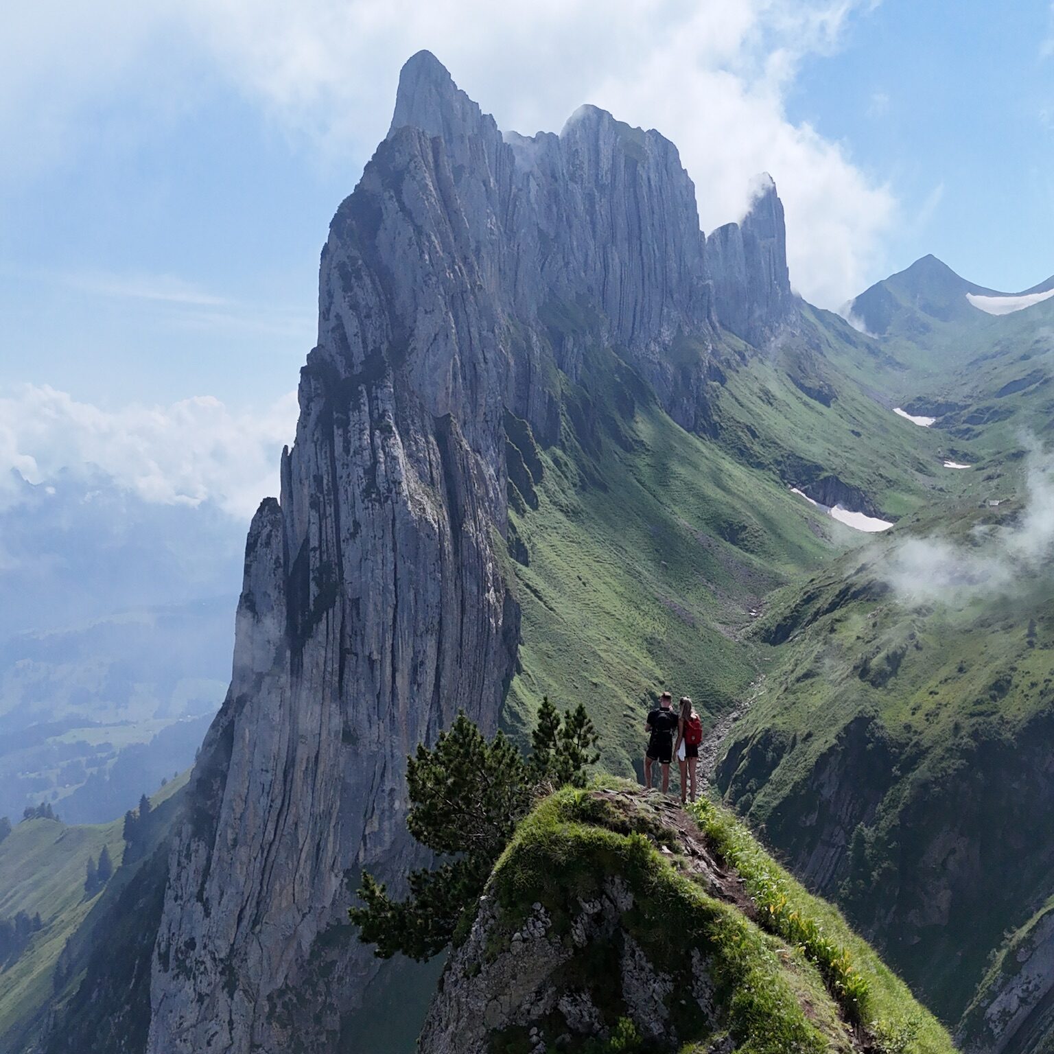 Vanaf het bergstation wandel je langs de bergkam richting Berggasthaus Staubern. Het pad slingert langs groene weiden met uitzicht op de ruige rotspieken van de Alpstein. Na een tijdje doemt het meest spectaculaire punt van de route op: de Saxer Lücke.